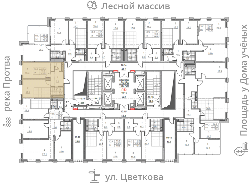 • площадь: 45.6 м2
