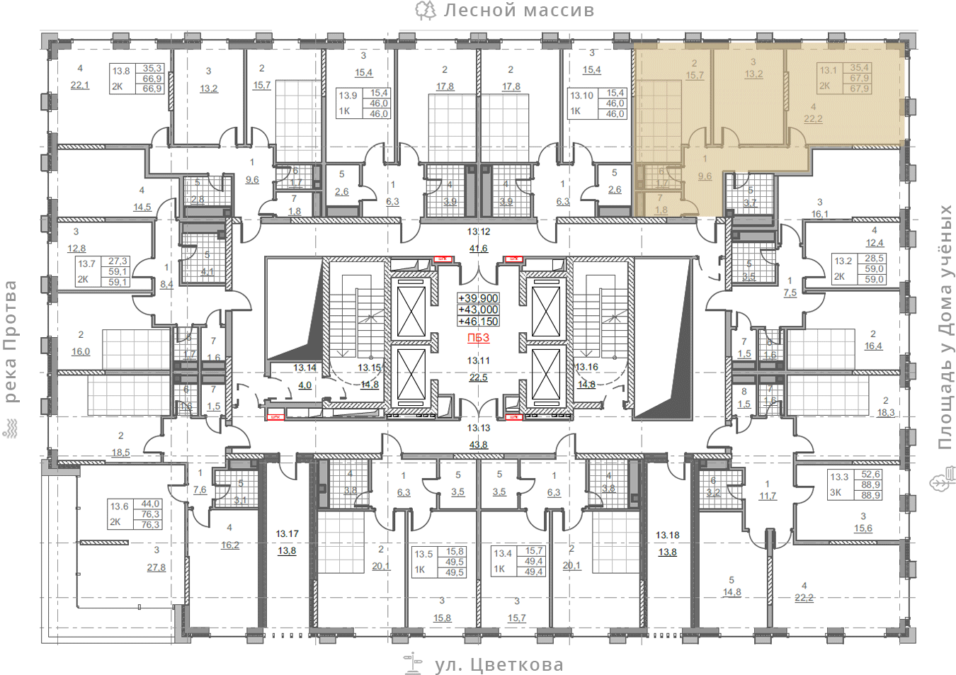 на этаже: 13