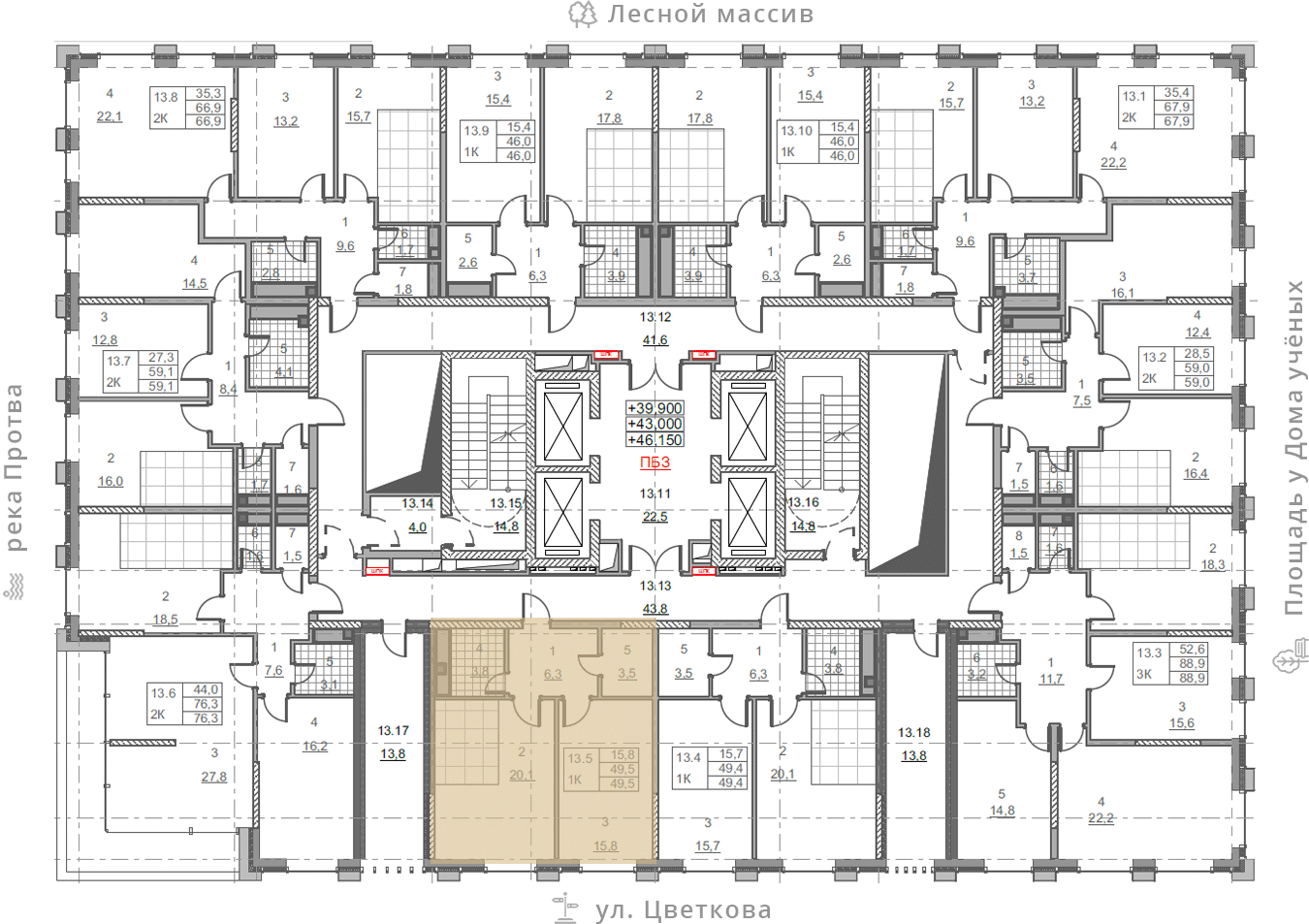 на этаже: 15
