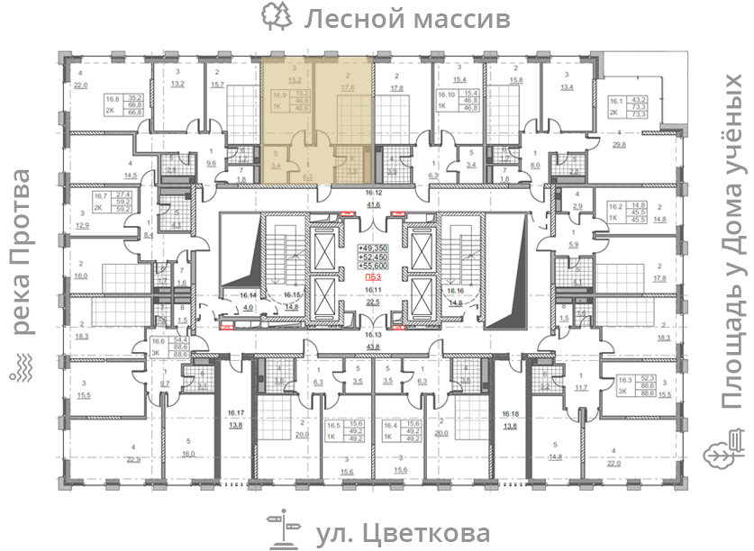 на этаже: 16
