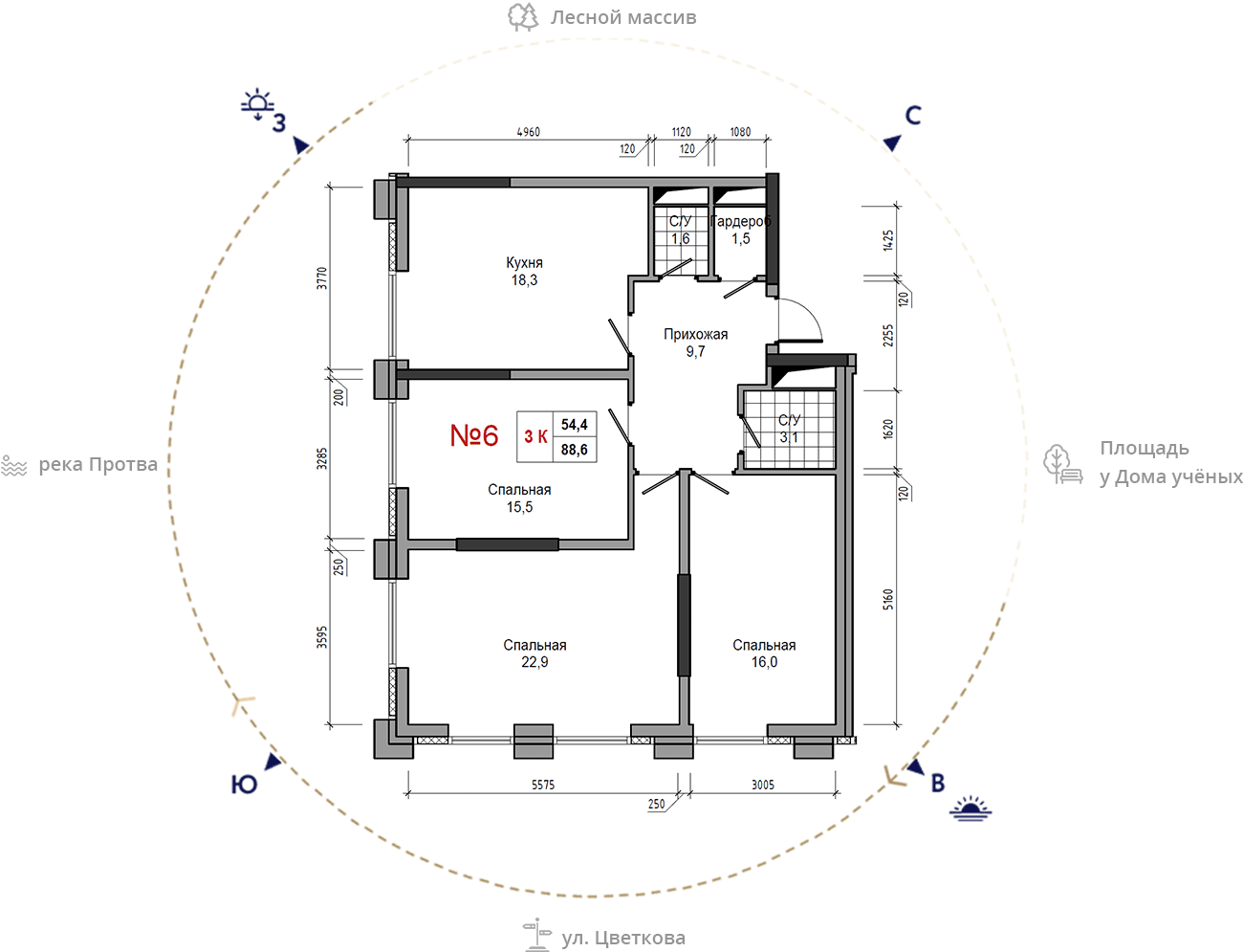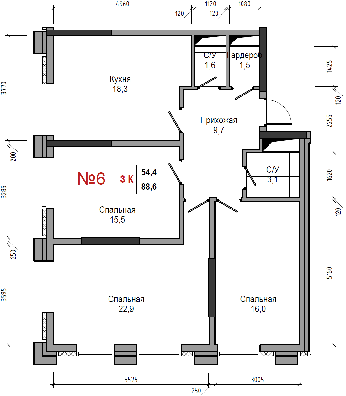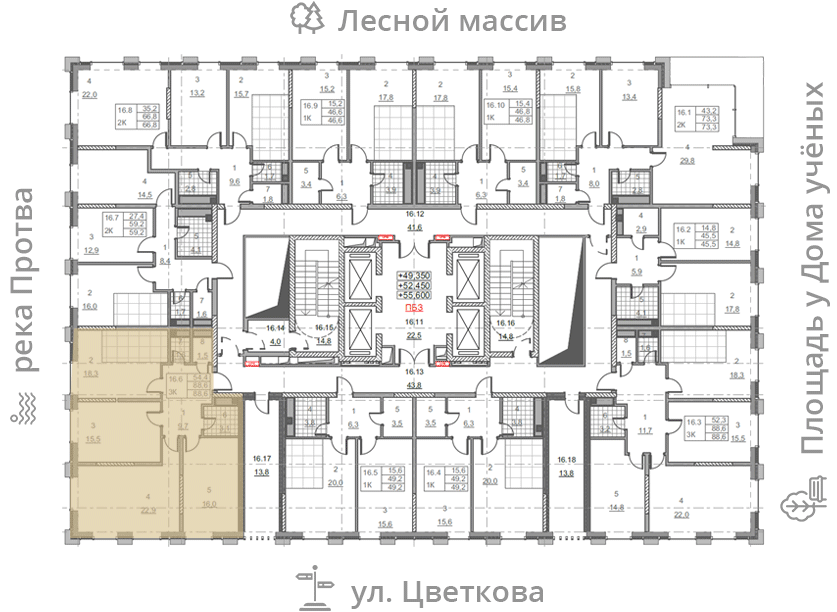 • площадь: 88.6 м2