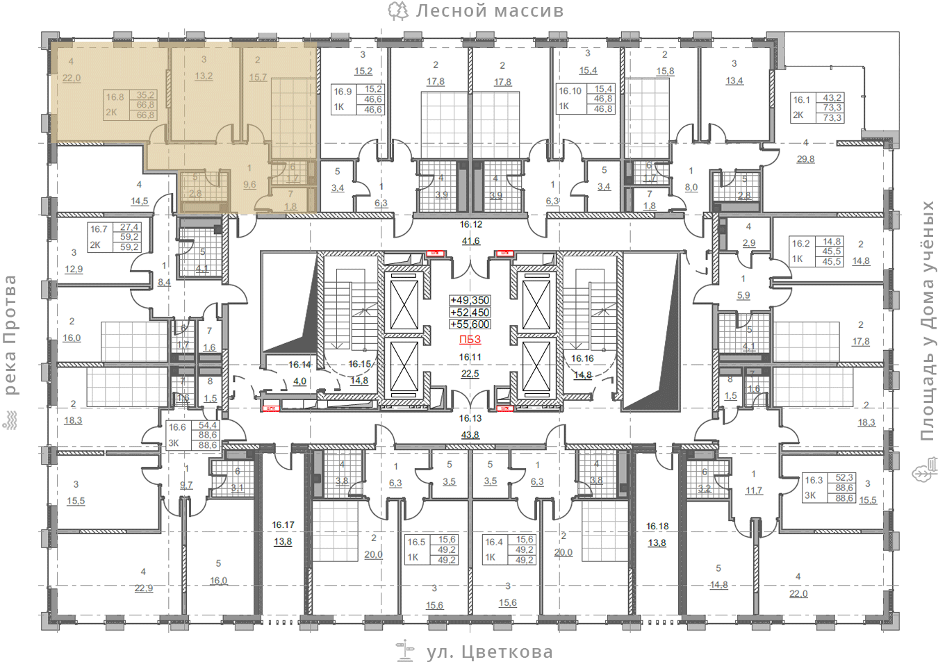 • площадь: 66.8 м2