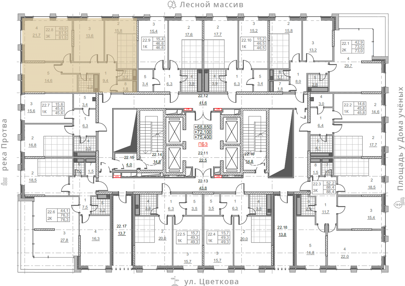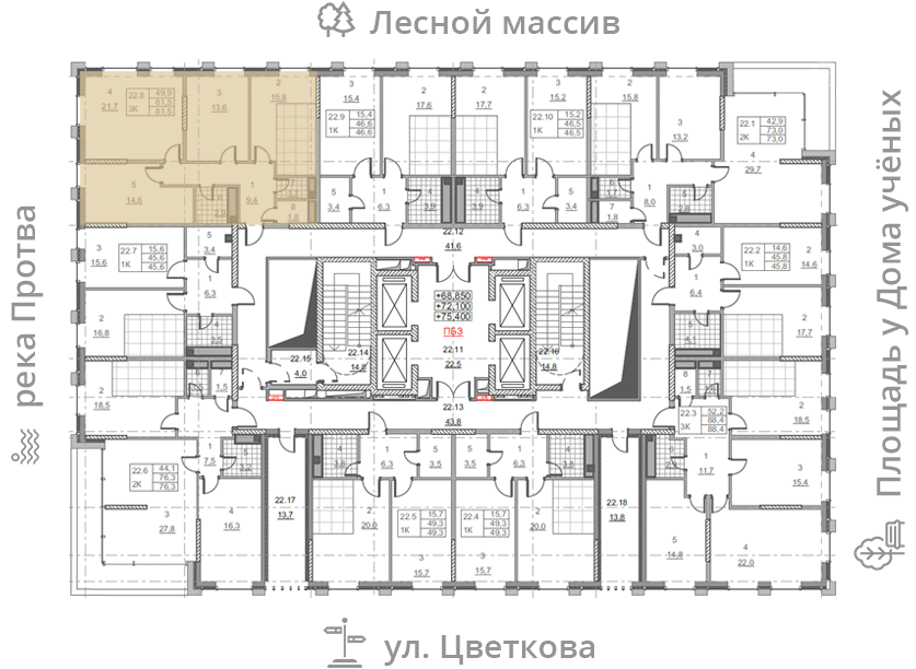 • площадь: 81.5 м2