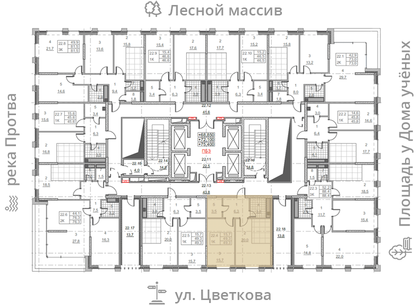 • площадь: 49.3 м2