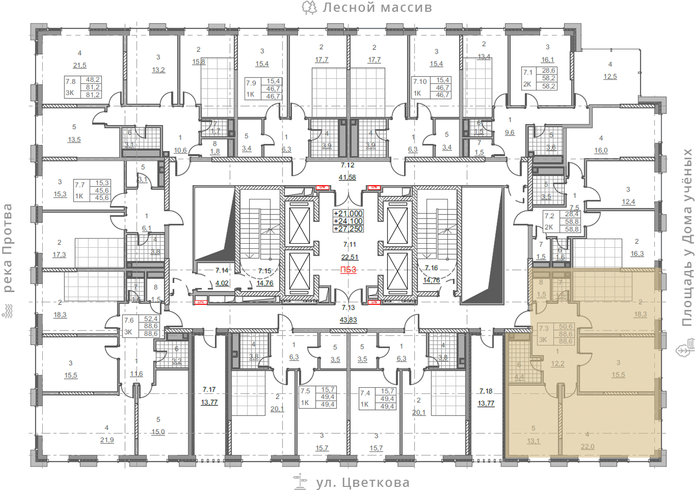 • площадь: 88.6 м2