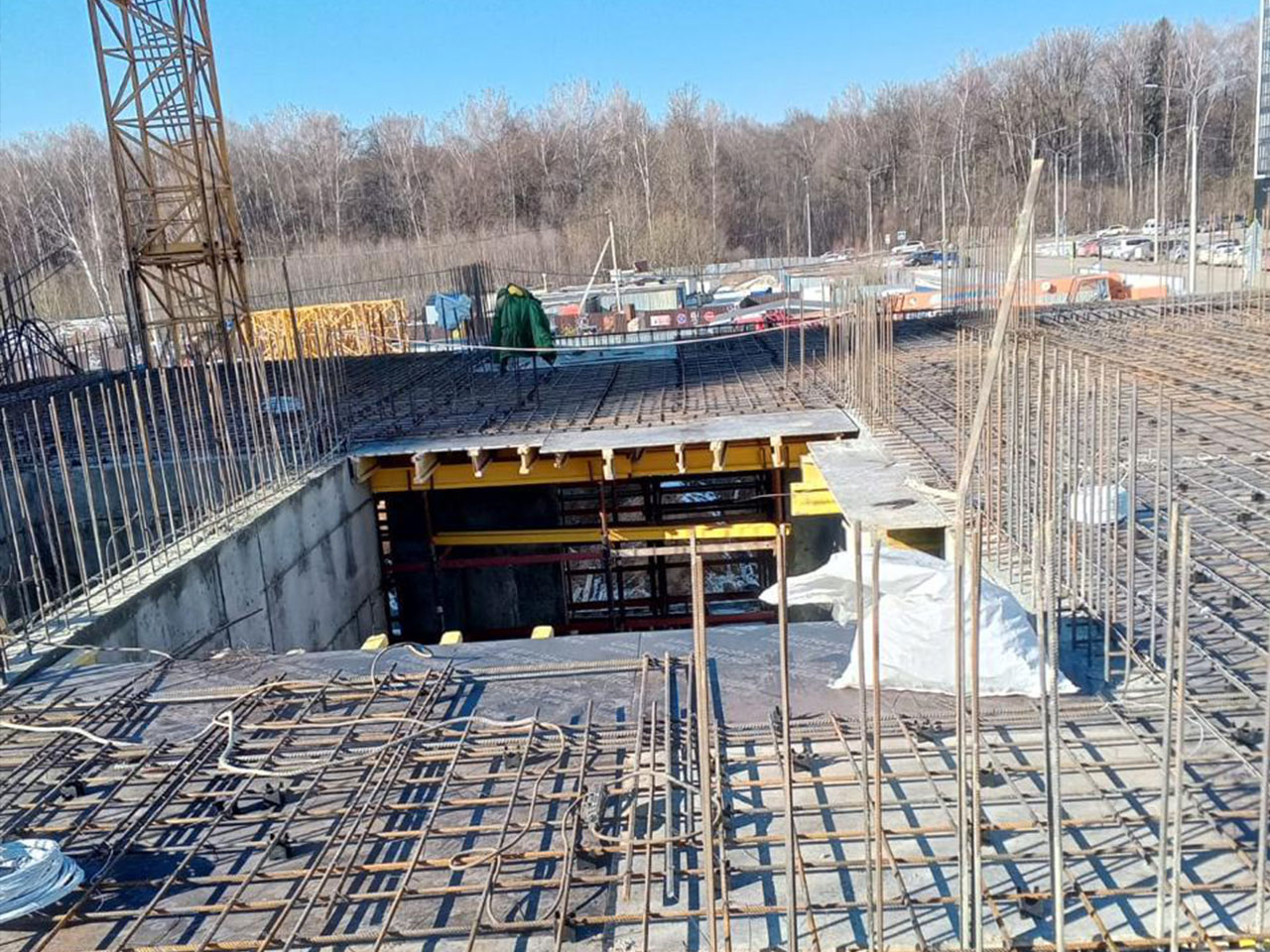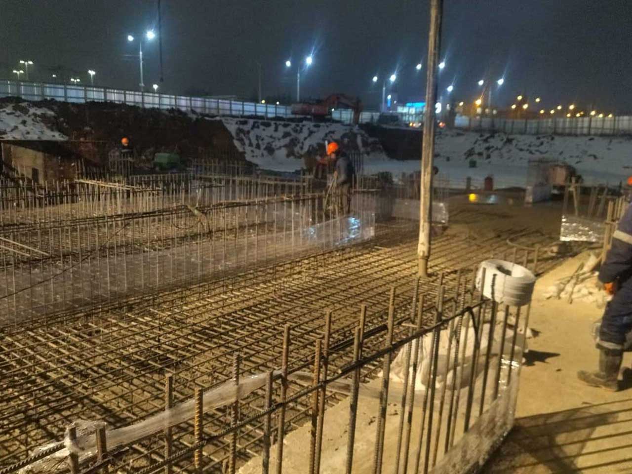 2. Армирование и бетонирование стен подземного паркинга