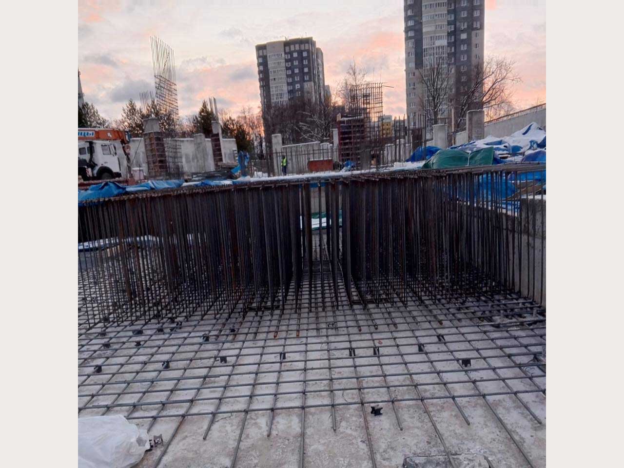 2. Армирование и бетонирование стен и пилонов подземного паркинга